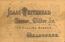 The framer is identified by a label centre, bottom reverse. Isaac Whitehead died in 1881 and his son continued the business with ongoing changes of address.1 Like other frames that are attributable to the son, this one is based on a strongly classical form, but in this instance the shape and detailing are more closely associated with frames made by John Thallon. The large-scale reeded leading edge is to be found on the frame on Tom Roberts’ Louise, daughter of the Hon. L. L. Smith from 1888. (4647-3) The simple scotia profile is one that recurs through the 1880s and 1890s. The Whitehead frame is distinguished by the tapered relief of the working edge, a refinement that changes the relationship the frame has to the wall and is not often seen, despite being a feature of seventeenth-century Dutch frames. The subject of this painting is the first owner of Tom Roberts’ Shearing the rams. (4654-3)