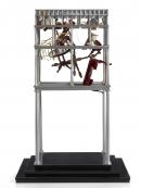 metallic and enamel paint on wood, plastic, metal, wood, fabric