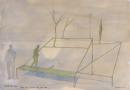 inscribed in pen and ink l.l.: FIGURE FOR SCALE STUDY FOR WALKING BY THE SEA