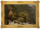 English painter John Glover emigrated to what European settlers called Van Diemen’s Land, now known as Lutruwita/Tasmania, at the age of sixty-three. Along with depictions of local scenes, Glover found there was a ready market in Van Diemen’s Land for paintings of European views. These were either copies of scenes he had painted in Britain prior to immigrating to Australia, or were worked up from drawings from his British sketchbooks. A mountain torrent is thought to be a replica of one of the Welsh or Lakes District views Glover had exhibited in England in the 1820s.