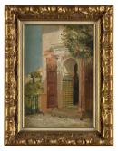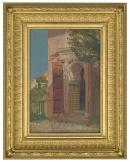 During the summer of 1883, when the Royal Academy schools were in recess, Tom Roberts set off for Spain with some Australian friends, including artist John Russell. The party moved quickly across the country, arriving in Granada early in September. It was here that Roberts met the French artists Laureà Barreau and Ramon Carbo Casas, who encouraged Roberts to pursue direct oil painting, in front of the subject. A Moorish doorway is crisply realistic, earthy in palette and flooded with sunlight. Still standing, the building has been identified as the Partal Chapel at the Alhambra in Granada, and it is believed that it was constructed during the reign of Yusuf I.