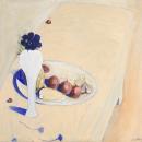 flowers (plant components) fruit (plant components) plates (general, dishes) tables (support furniture) vases vegetables