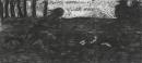 dark (colour attribute) light (colour attribute) monochrome monsters (legendary beings) rabbits running (physical activity) silhouettes trees