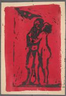 linocut printed over red gouache