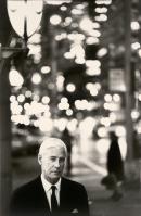 Portrait of Sir Ian Potter with blurred street lights behind.