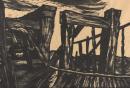 woodcut on oatmeal Japanese paper