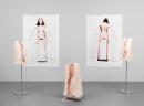 (a) Image of the artist, naked from behind, surrounded by soft, white, sculptural forms.
