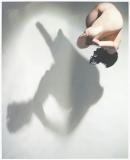 Image of the artist, naked, curled up in one corner of the image with a cast shadow.