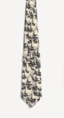 label, on reverse, woven grey on dark grey synthetic fabric: 100% SETA / 100% SOIE / REINE SEIDE / ALL SILK / MADE IN ITALY / (FOUR CARE SYMBOLS)/ DRY CLEANING / COOL IRON