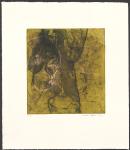 etching, drypoint, scraper, uncut woodblock printed with green ink, watercolour pigment