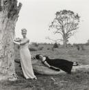 This photograph was taken early in Sue Ford’s artistic career, and features her friends Carmel and Trish posing in a paddock. Although Ford approached her photography seriously, her sense of humour comes through in this image, which has been described as both an experiment and a playful critique of photography. Throughout her career, Ford often turned the camera on herself, as well as on her family, friends and acquaintances, using the medium to explore social and political issues. Her work is aligned with the important wave of Australian feminist photographers active during the 1970s.