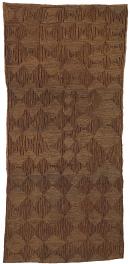 The painting depicts pattern created when weaving Ömie belt and armlets. It is a design of the eye which was once tattooed onto the bodies of Ömie clan members. The vigorous design is a farrago of diamonds.