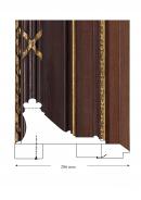 The frame consists of a wooden profile, with only two runs of composition ornament. The timber is a softwood, possibly sequoia. The assembly is simple, using mitred corners, nailed from above and below and re-enforced with a batten across the reverse. The reeded leading edge is a separate timber section, nailed and glued in place. The working edge is formed by the addition of a batten, glued and nailed in place. The slip is positioned with blocks distributed around the reverse and held in place with nails bent over. There are thin crossed bands along each side and covering the mitres of the corners. The composition work is matte oil gilded with false gold. The timber body of the frame appears to have been stained. The appearance is darker for the bulk of the frame, lighter on the small flat and lighter again for the slip. The stained wooden surfaces are finished with a surface coating giving a soft lustre to the timber.