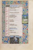 farmers (people in agriculture) floral patterns human figures (visual works) illuminated manuscripts Latin (language) months rams (animals) zodiac symbols