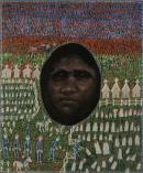 inscribed in crayon on reverse u.l.: Federation Series; / ‘Auntie Dot’ / by / Julie Dowling / May 2001 / Acrylic, Red Ochre and Plastic / on Canvas. / ~ / This painting shows my great Auntie / Dorothy Latham who was taken away / from her Badimaya mother and put into / an orphanage by her wudjulah (white) / father when she was eight years old, / at the time there were massacres in the / Kimberley in the North West of W. A. / ~ / 1920–1930