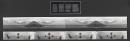 Group of eight photographs and one title photograph that are placed along two joined pieces of paper to form two panoramas: one of mountains and a lake, one of the legs of a man in a bath tub. Each of the bottom row of images has a word in the bottom centre, which read l.r. breathe in; out; in; out.