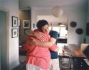 Image of a man hugging a woman, the woman is wearing a pink shirt.