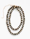 The necklace is of pairs of aged well worn conus shells alternated with large black bush seeds.