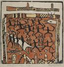 inscribed in pencil l.l.: aboriginal design "The hunt"