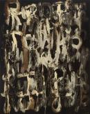 synthetic polymer paint, bitumen varnish and enamel paint on canvas