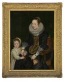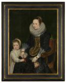 As a young man, Cornelis de Vos worked with the most important Flemish artists of his time, Peter Paul Rubens, Anthony van Dyck and Jacob Jordaens, and he quickly absorbed many of their innovative qualities. So precocious was his talent that by the age of twenty, de Vos had mastered formal portraiture. Van Dyck went to England around 1620, and Rubens was often away from Antwerp. In their absence, de Vos assumed the mantle of the most prominent portrait painter in that city. This work of 1624 has the vigour and accomplishment of a mature artist at the height of his powers. Here de Vos has sensitively captured the informality in the relationship between the mother and her child; this refreshingly modern approach is regarded as the particular achievement of Flemish artists. De Vos’s clientele were the wealthiest burghers of Antwerp, who eagerly sought portraits of their family members. At this time of religious conflict, Antwerp remained a staunchly Catholic city, and the richness of the dress and the prominence of the crucifix on the mother’s chest attest to this. The picture offers a fascinating contrast to the fine Dutch portrait of a woman from the 1640s, which is distinguished for its austerity.