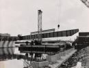inscribed (diagonally) in pencil on reverse l.c.: A floating 20 ton crane placing girders / in the low level river bridge / This is the first girder / from pier 1 to the north / bank of / river