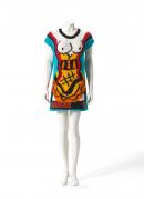 Crete and Minoan fresco-inspired hand-knitted multi coloured cotton dress.