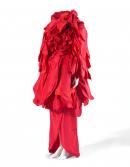 Red silk taffeta multi-layered Flame waratah outfit comprising petal cape and bodice, three skirts - petal skirt, short skirt and long slim skirt - and petal arm and hair accessories.