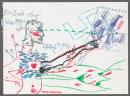 coloured pencils, blue ballpoint pen, felt-tipped pen