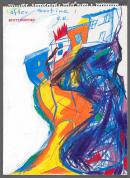 coloured pencils, blue ballpoint pen, synthetic polymer paint
