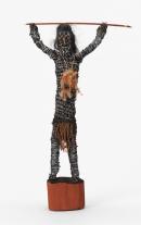 earth pigments on Pandanus (Pandanus sp.) and Milkwood (Alstonia actinophylla), natural dyes, bush string, feathers, human hair