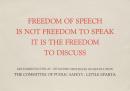 printed in red ink: FREEDOM OF SPEECH / IS NOT FREEDOM TO SPEAK / IT IS THE FREEDOM / TO DISCUSS