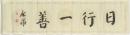 The horizontal piece of calligraphy is read from right to left. The four characters 日行一善 means `every day do one good deed’ with 日 meaning `day’, 行 meaning `do’, 一 meaning `one’ and 善 meaning `good [deed]’.The words or characters are written in the regular script of Chinese calligraphy. The characters are written in beautiful and elegant simple brushstrokes and are well balanced and composed.