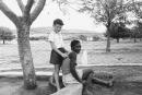 inscribed (diagonally) in pencil on reverse l.c.l.: Farmer's son with / his nursemaid. / Marico Bushveld / 12/1964