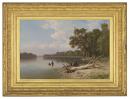 This painting had no frame when it was acquired and so was a high priority for framing so that it could be displayed in the gallery. Frames on Johnstone’s works at the Art Gallery of South Australia were referred to and a suitable frame was found on Johnstone’s Beeches, Fontainebleau, painted in 1882. This English neo-classical style frame provides a relatively wide gold border, consisting of several bands of running ornament, which is typical of conventional salon frames of the period.
