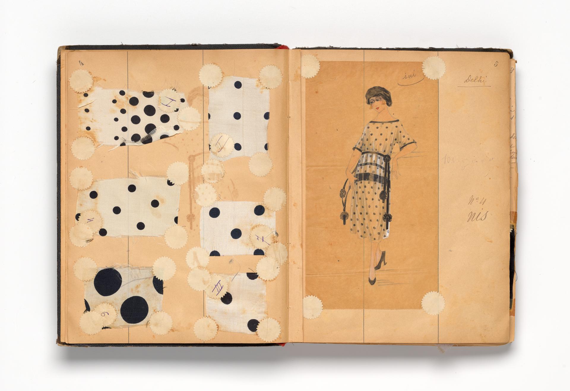 One album containing 125 original gouache designs from 1918–25 with fabric samples, eleven colour designs with elements of collage work and fourteen gouache designs from 1942–43.