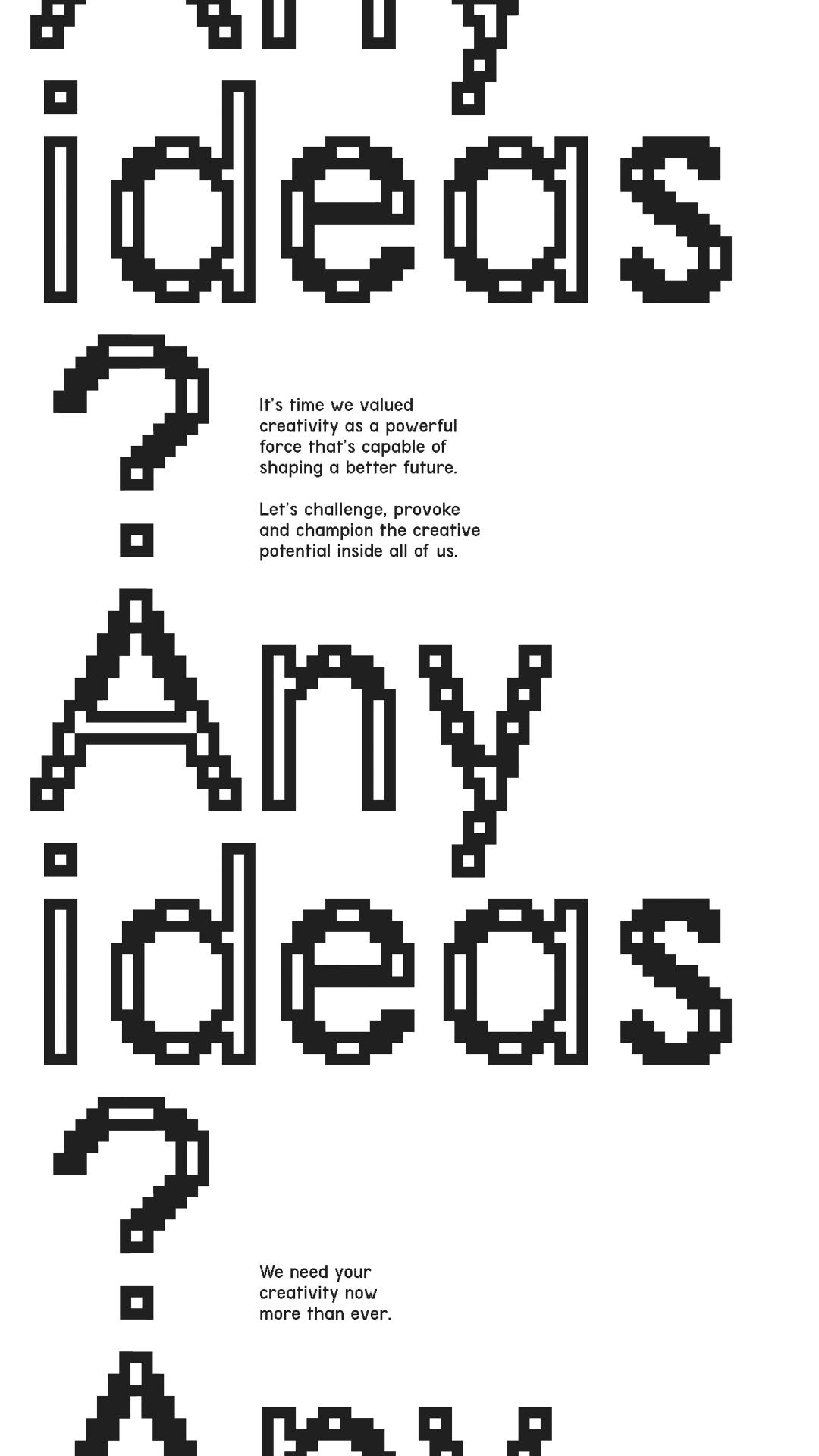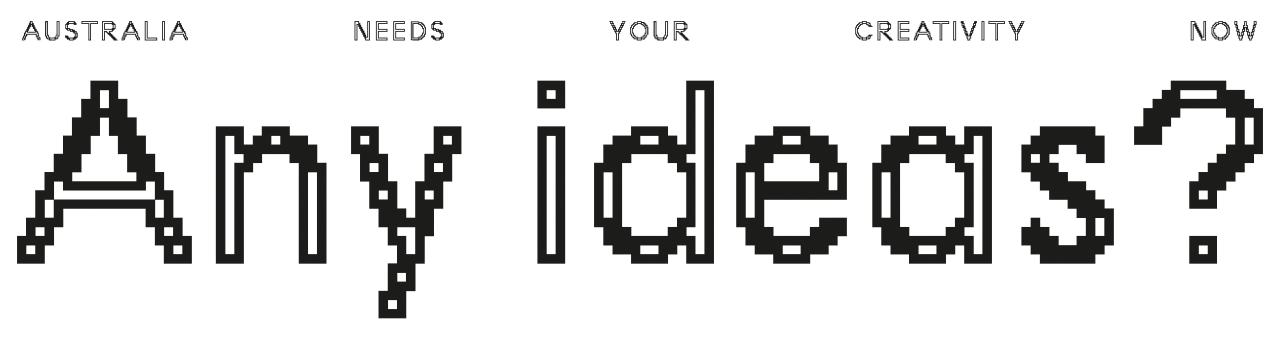 Frost*collective draws on this familiar scenario to set the tone for Any Ideas? – a campaign that asks Australians to generate great ideas as a force for good. From reducing single-use plastic, improving the efficiency of public transport networks, or breaking society’s tech-addiction, through one powerful open-ended question, the campaign invites unending possible solutions to current issues. Shared in the gallery, through instagram, @_any_ideas_ and online, via anyideas.co Any Ideas? is challenging, thought provoking and champions creative thinking.