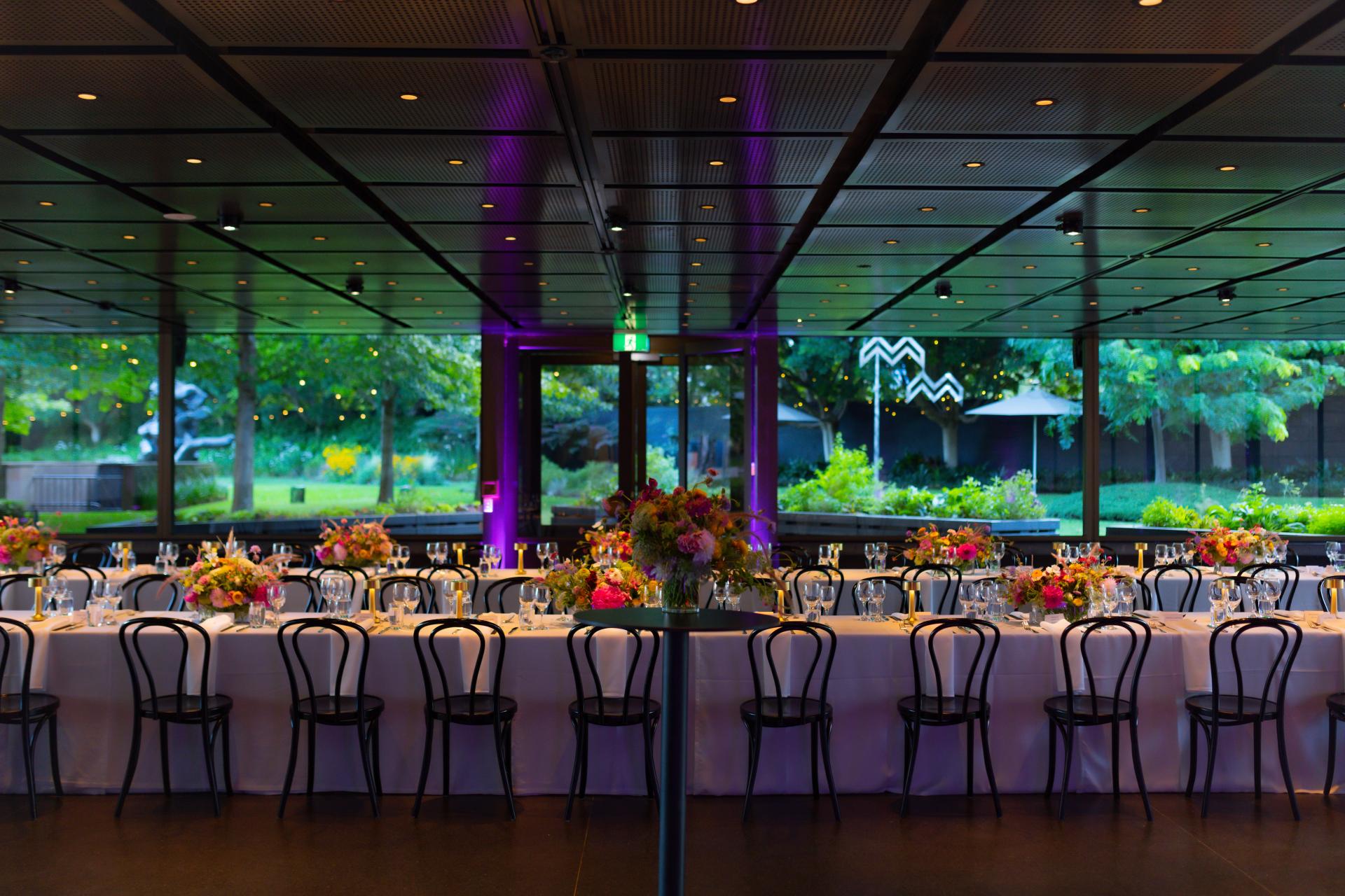 This unique function space nestled within the Gallery and surrounding city skyscrapers, overlooks the tranquil NGV garden, moat and sculptures. With dramatic windows on three sides and bathed in natural light, the restaurant setting is relaxed and elegant. For summer months, enjoy a view of the NGV Architecture Commission. Garden Restaurant is a quiet oasis within Melbourne’s cultural precinct, and a premier venue for corporate breakfasts, product launches, intimate dinners, wedding receptions and cocktail functions.