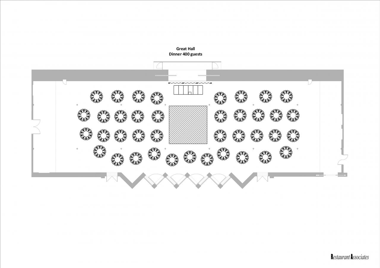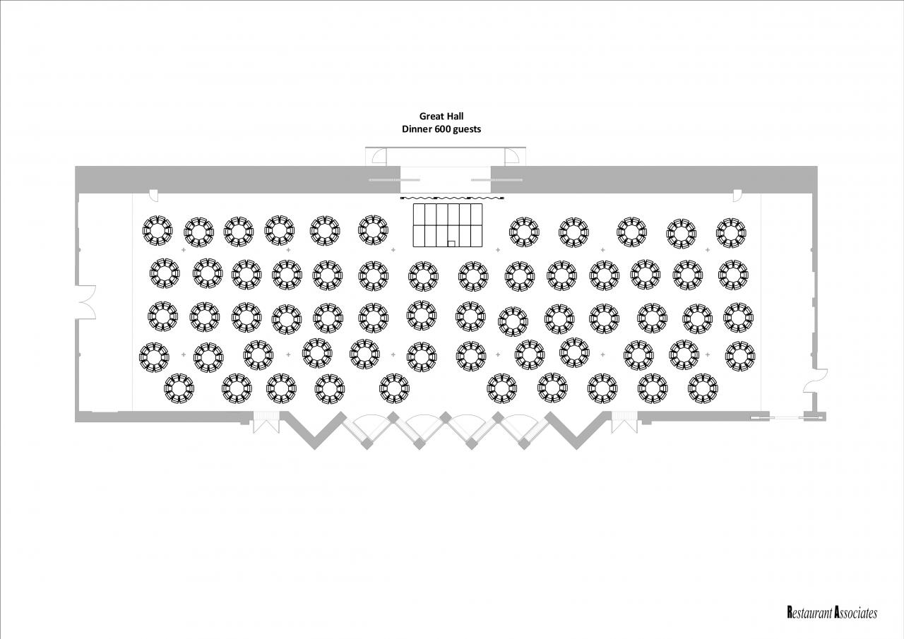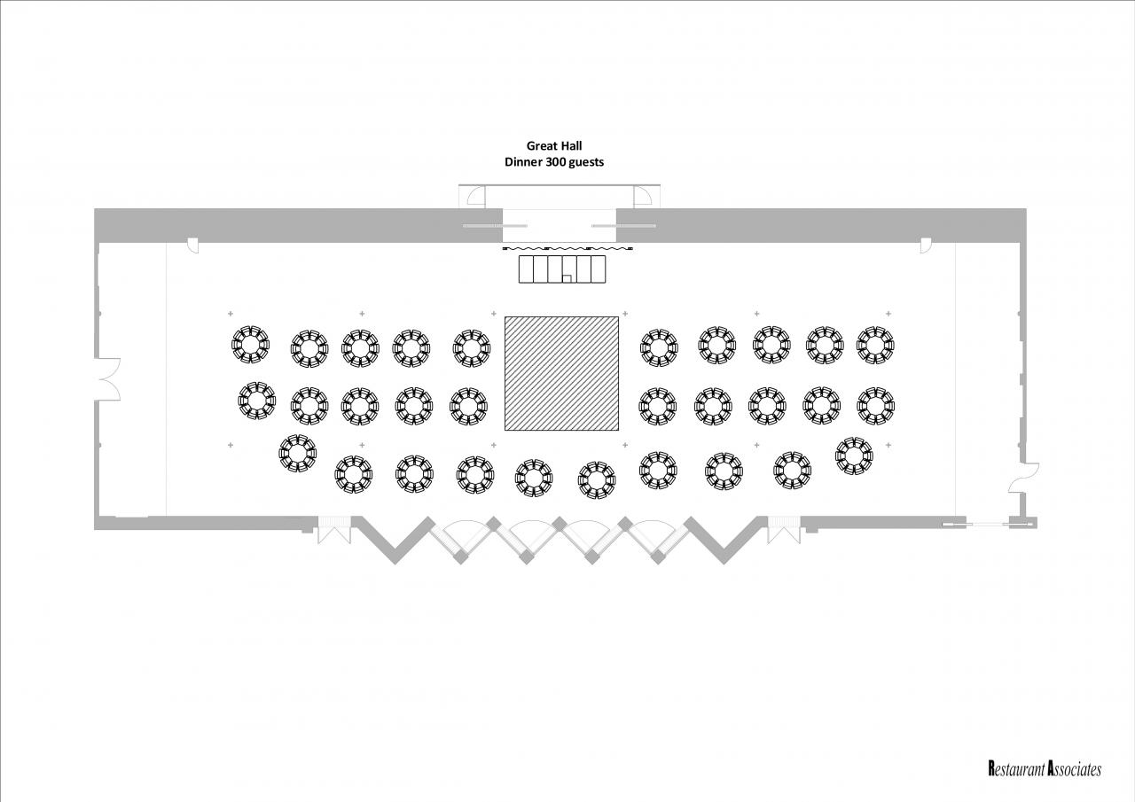 The Great Hall has an area of 775 square metres, with capacity of 600 for banquets and 1100 for cocktail events.