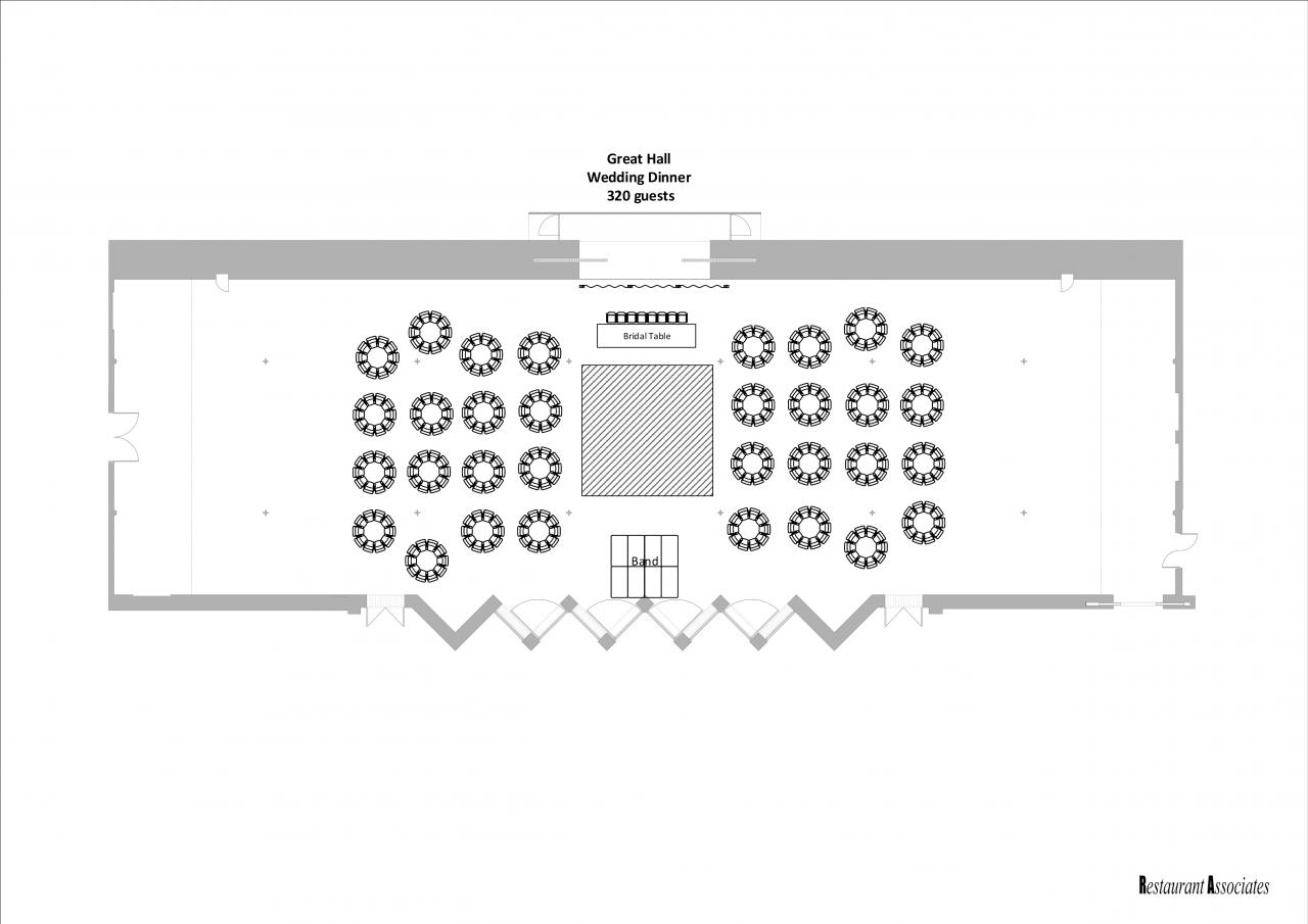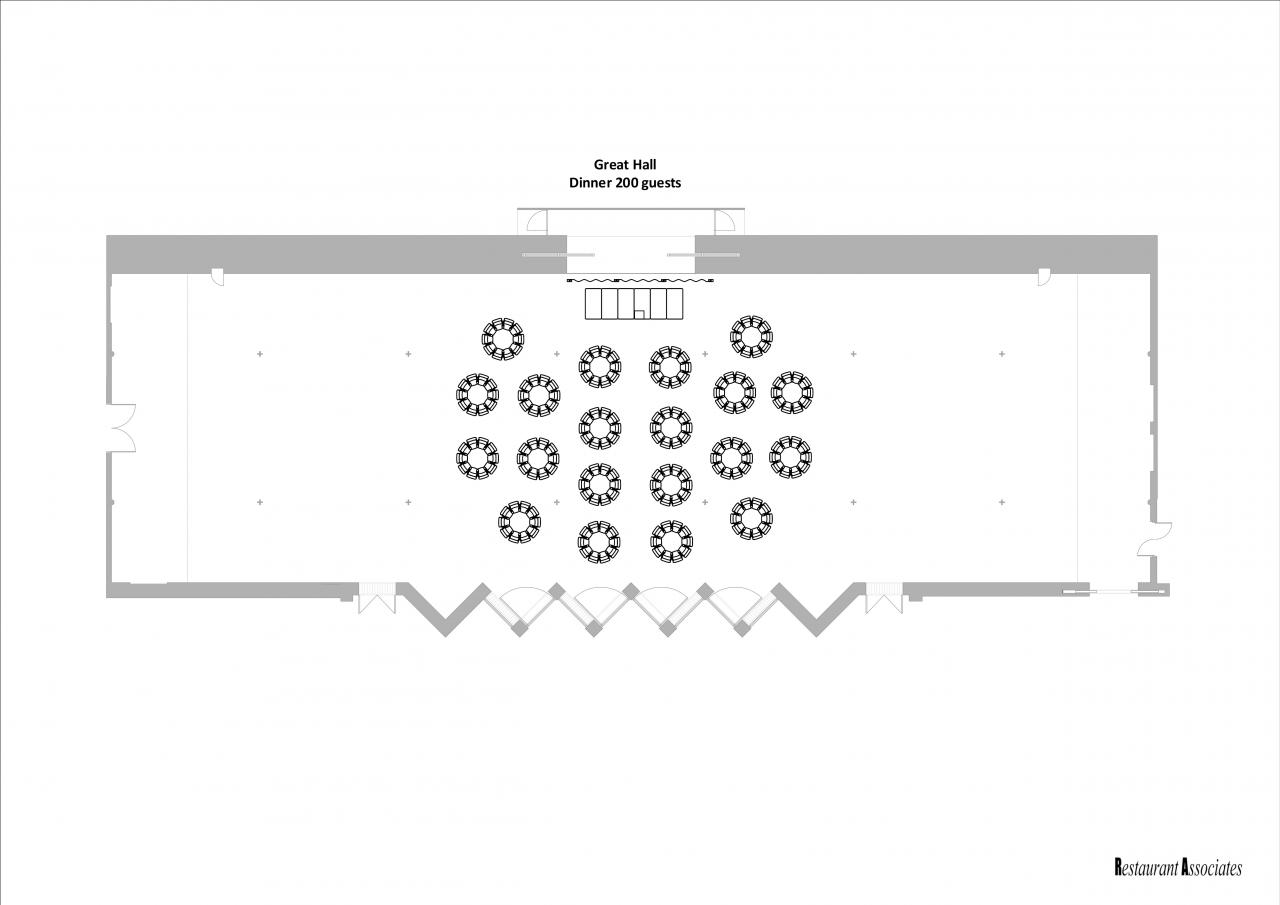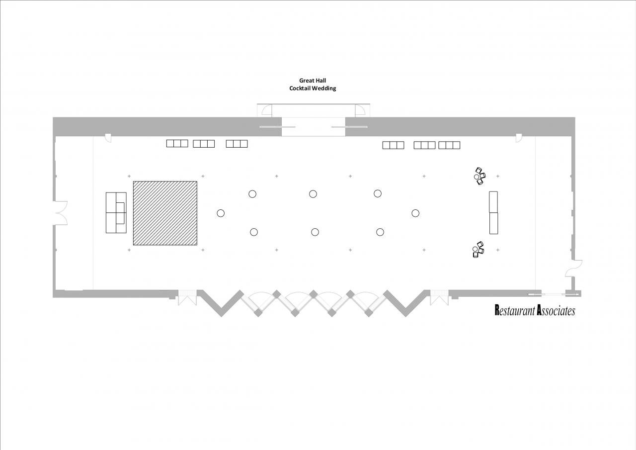 The Great Hall has an area of 775 square metres, with capacity of 600 for banquets and 1100 for cocktail events.