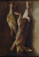 Kitchen still life with a hare and two partridges (Natura morta di Cucina con una lepre e due pernici) late 18th century