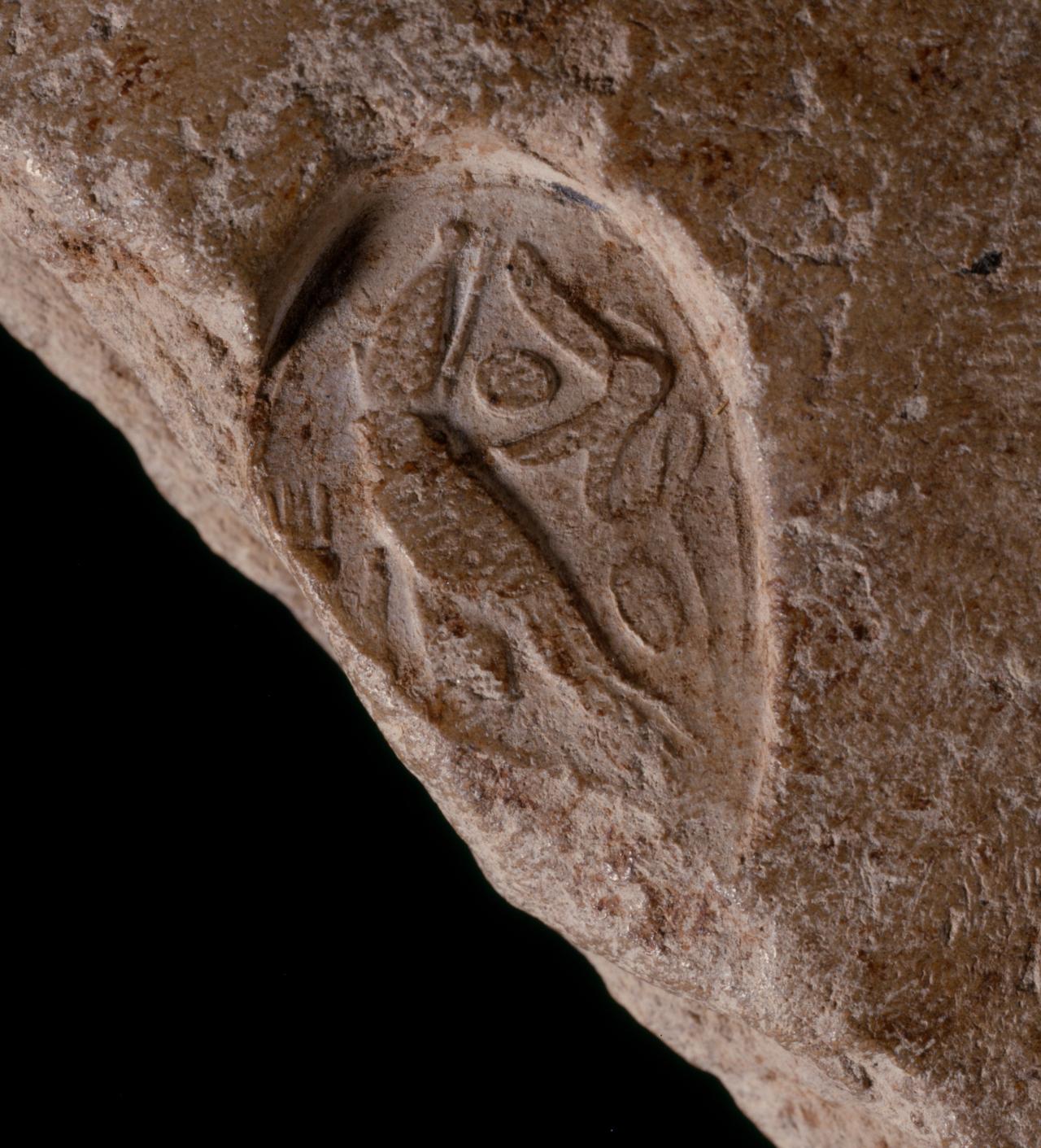 Detail showing the seal impression on the back of a tablet etched with correspondence about a Babylonian princess Egypt, Amarna 18th Dynasty, reign of Amenhotep III, about 1390–1352 BCE clay E29787 © Trustees of the British Museum