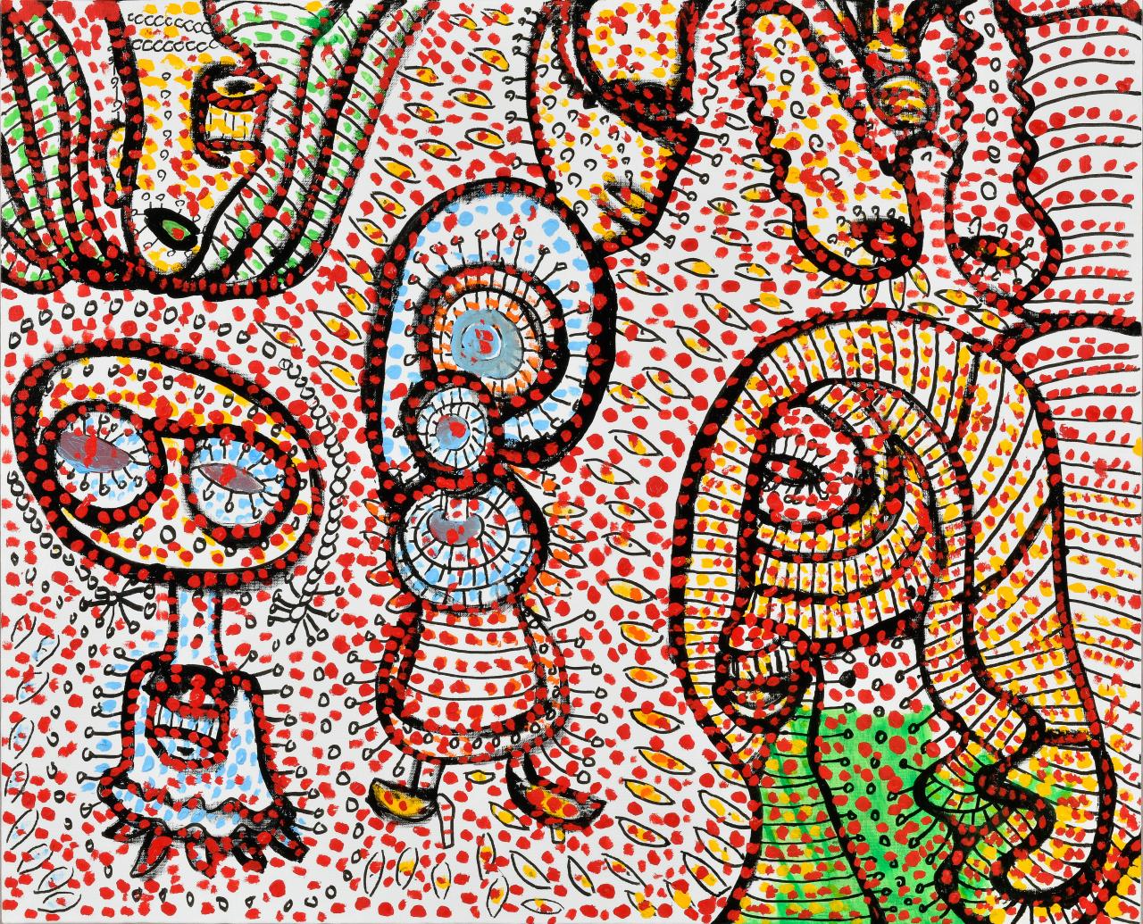 synthetic polymer paint and marker paint on canvas