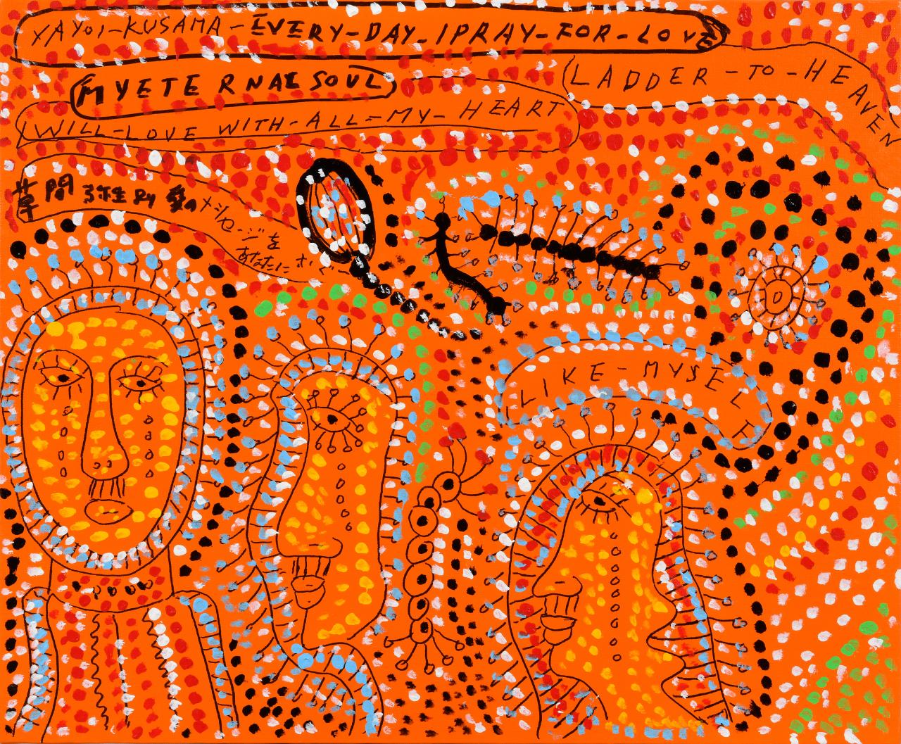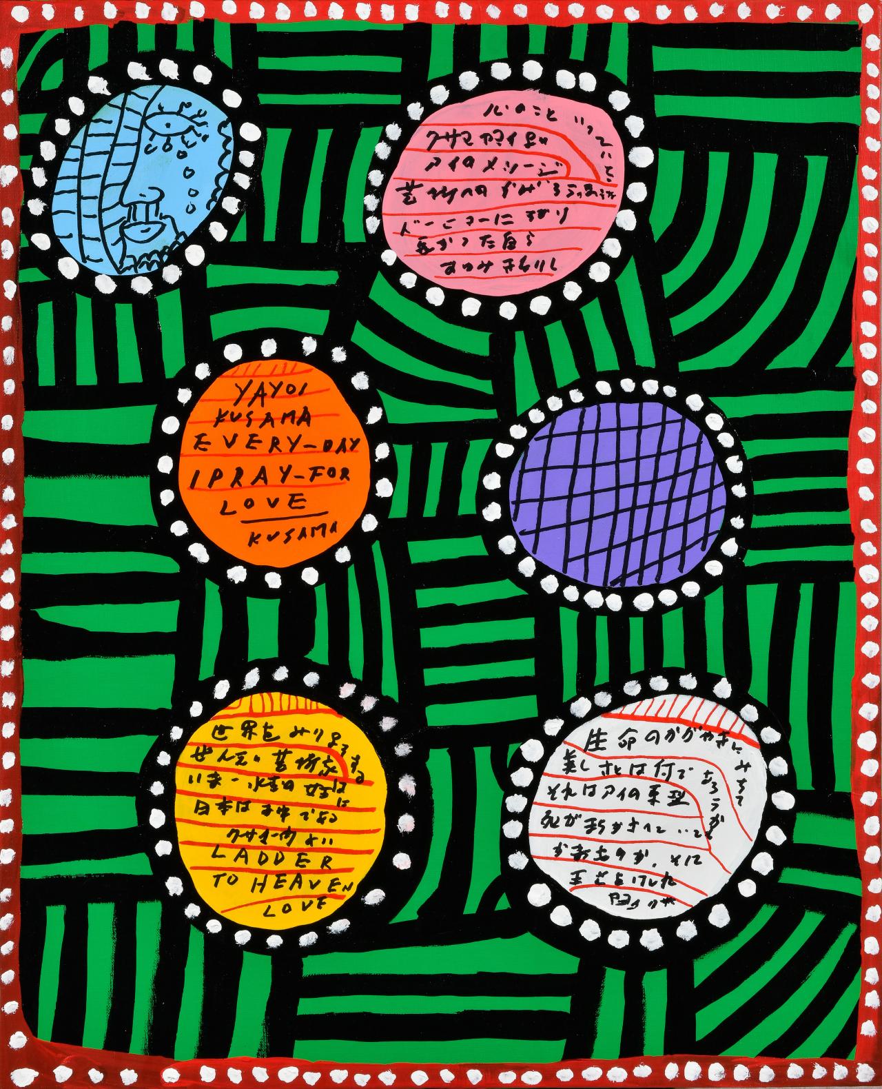The Heart of Yayoi Kusama / What Does it Mean That We Human Beings Go on Living / Desiring a Beautiful Life and Death in a Sanctified Future / As a Human Being Born in the World of People / I’ve Brilliantly Made It Through, Surviving the Wonder of Living in This World / EVERY DAY I PRAY FOR LOVE / I PRAY LOVE Joys and Sorrows of a World of Dazzling People Submerged in Fallen Tears / Now Is the Time to Cling to Joy / Powerfully / I Shall Live on with Strength and Heart / May the Way I Live Transcend My Death