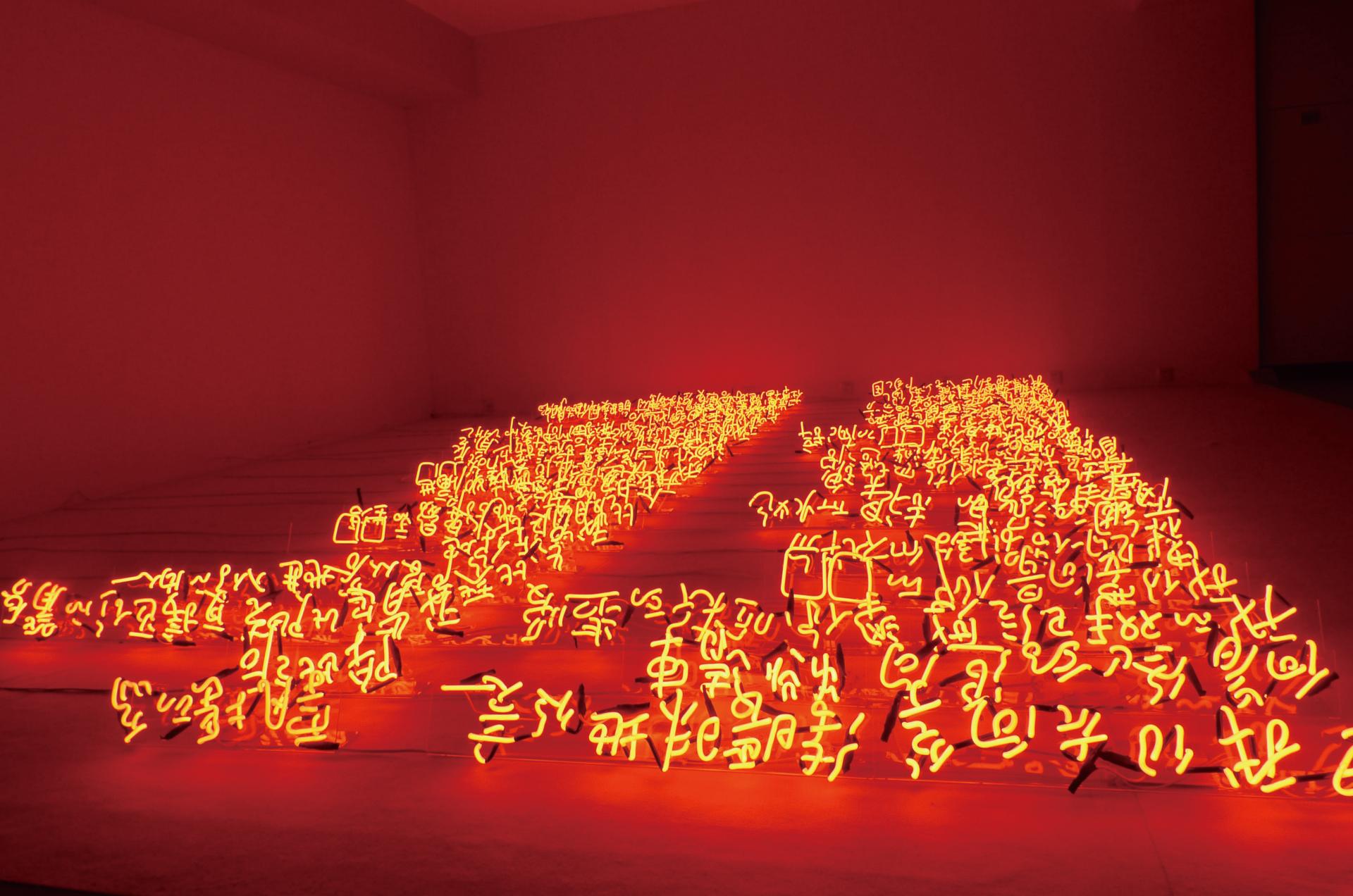 Other key works include Shi Yong’s acclaimed installation, A Bunch of Happy Fantasies (2009), made of upside down calligraphy characters in the form of neon lights and Fairy Tales in Red Times (2003-07), a series of large scale and vividly coloured photographs which gives the exhibition its title, by husband and wife artists Shao Yinong and Muchen.