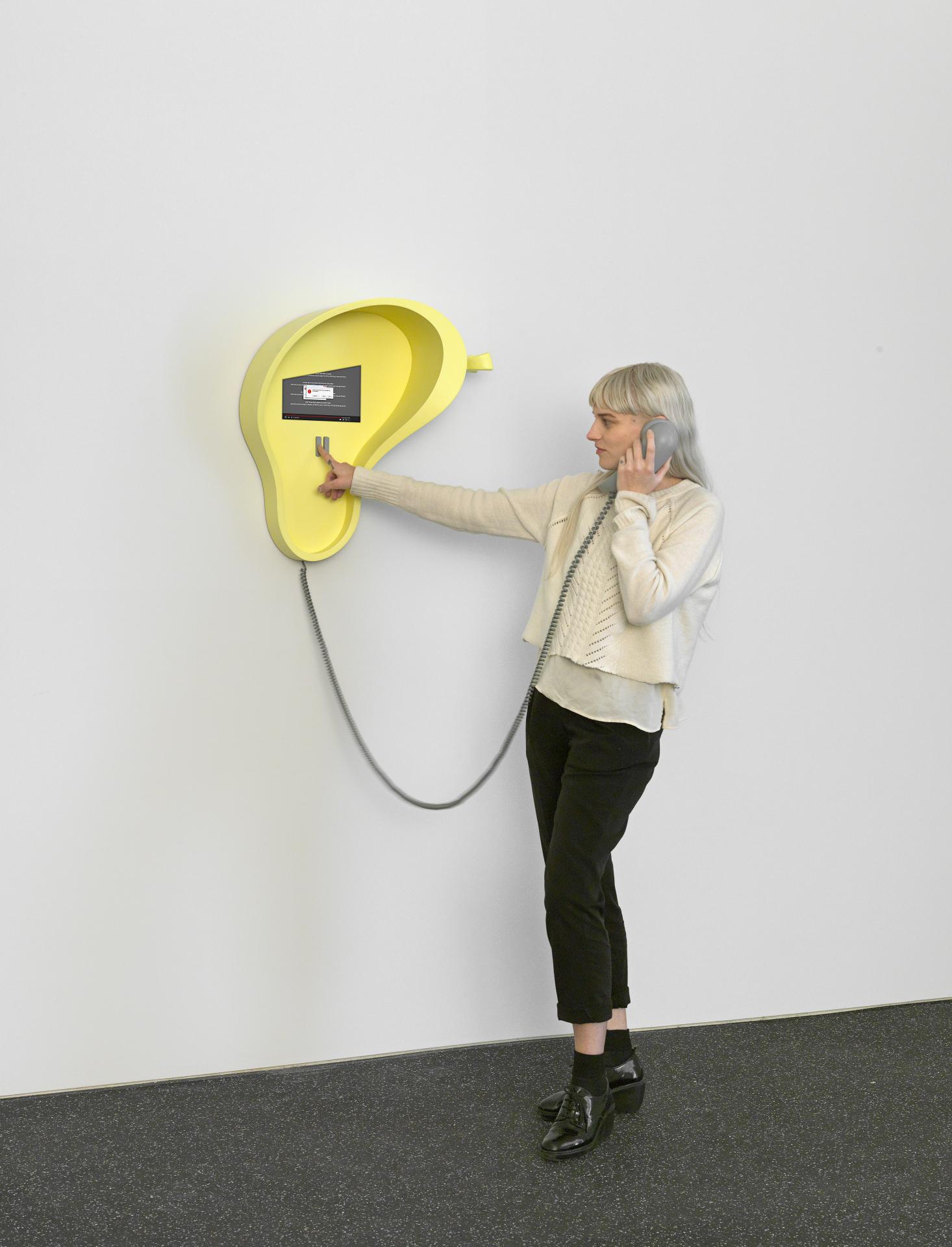 The exhibition will also feature new watercolour works on paper that have never been exhibited before which explore aspects of human psychology, and the artist’s Interphones series of telephone sculptures that playfully draw attention to our relationship to authority and technology. In these interactive works, Henrot invites visitors to pick up a customised telephone and respond to prompts such as ‘Would you ever have sex at work? Is Google right about you? Are you gluten-free? Press control for yes. Enter for no.’