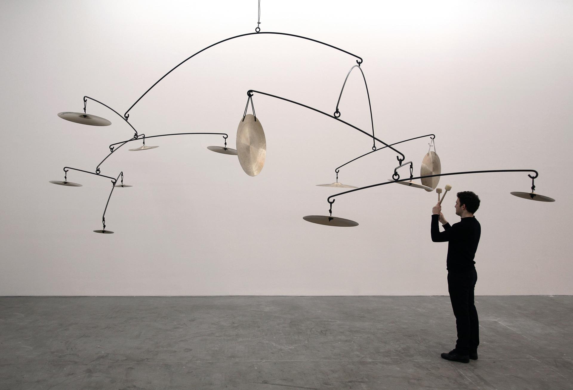 The chimes of copper cymbals will resonate throughout the foyer of NGV International when renowned Mexican artist Carlos Amorales presents his interactive sculptural work We’ll see how all reverberates, a dynamic suspended installation which takes the form of three mobiles balanced by thirty-five copper Zildjian cymbals. Through the use of musical gongs visitors are invited to strike the cymbals, producing a chorus of sound and movement within the space.