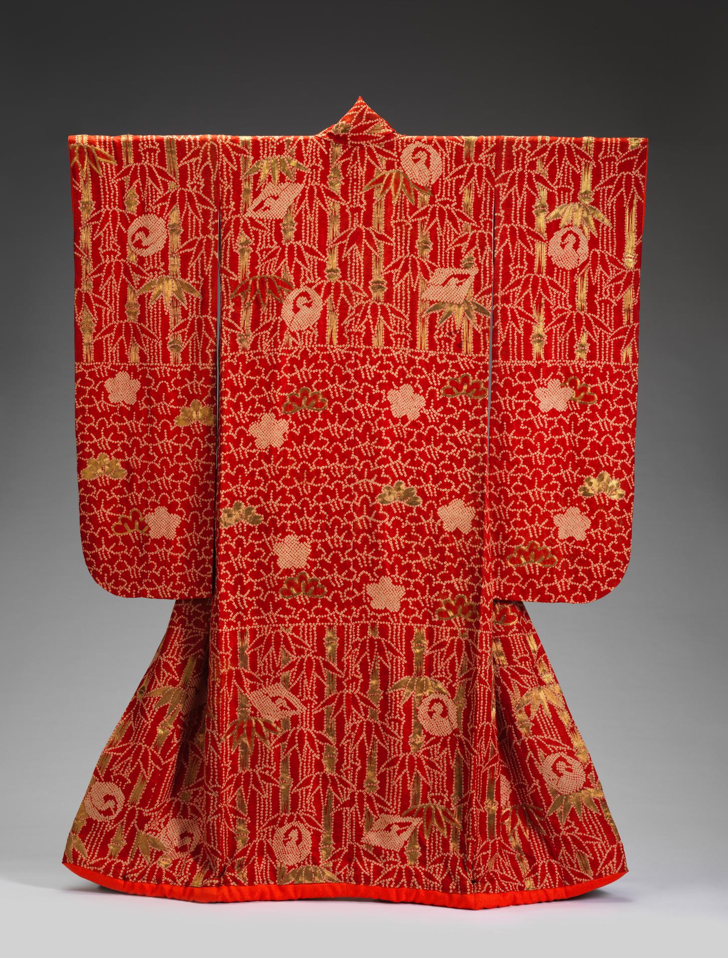 Following a loose chronology, the exhibition explores key themes and periods in kimono fashion history, such as childrenswear, modernism, the seasons and the macabre. The exhibition showcases the breadth of materials used for textile production throughout Japanese history, including silk, cotton, hemp, metallic thread, paper, elm bark, banana tree fibre and deer leather. The exhibition also draws attention to the diverse skills mastered by traditional artisans, including shibori tie-dye, rice paste resist designs and indigo blue dyeing techniques.
