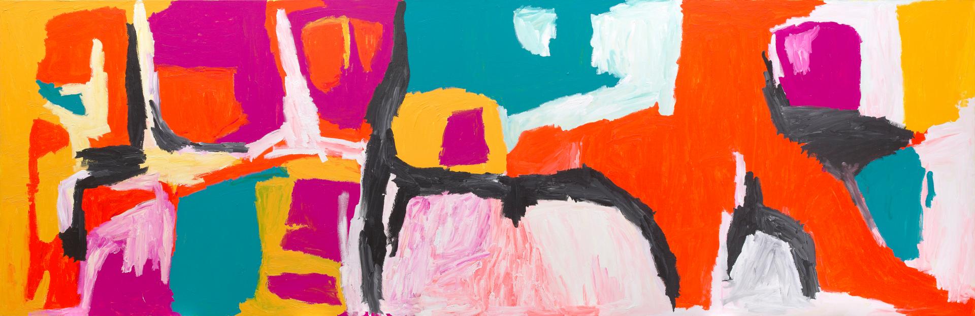 Dulka Warngiid – Land of All reveals Gabori’s lifelong connection to Bentinck Island, the home she was forced to leave in 1948 following a prolonged drought which was broken by a catastrophic cyclone, inundating the island. Bursting with colour and energy, Gabori’s paintings appear abstract but tell heartfelt stories of her homeland and family. With no Bentinck Island painting tradition to follow, Gabori’s work demonstrates a radical departure from traditional Aboriginal painting styles and inherited iconography.