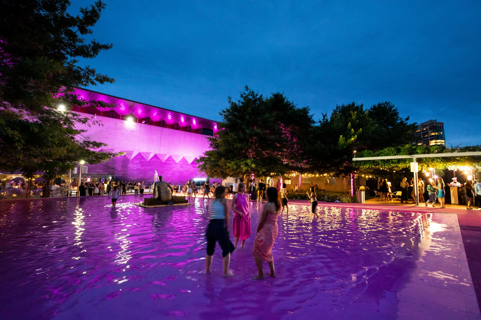 NGV Summer Nights also sees a selection of bespoke bar and dining experiences, including a pop-up kiosk in the NGV Garden. Surrounded by pond[er], an aquatic installation designed by architects Taylor Knights and artist James Carey evoking Victoria’s pink salt lakes, visitors can enjoy a range of deli-style sandwiches, including the Ruben, beef & pickles and vegan ‘pulled pork’ jackfruit, as well as gelato, Four Pillars Gin and Yering Station wines.